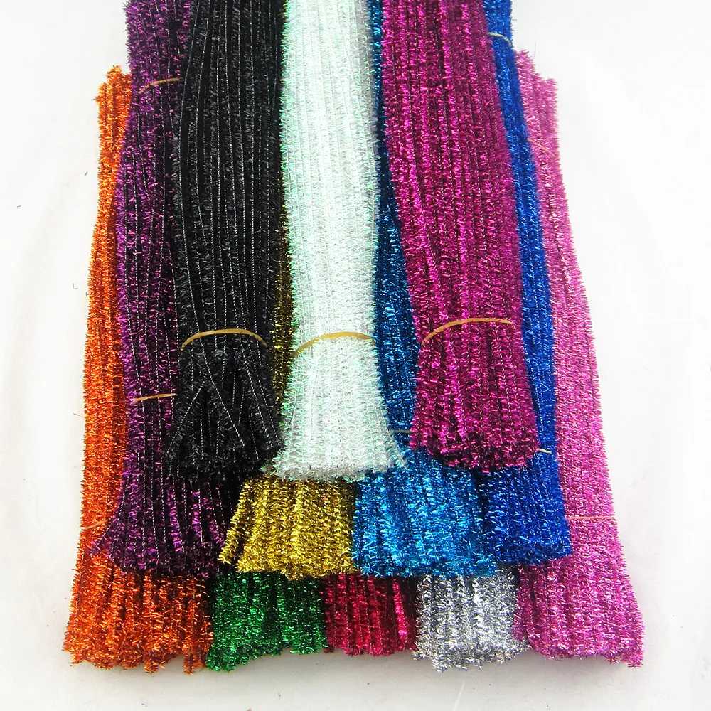 100pc/lot Assorted Glitter Metallic Chenille Stems Sparkly Pipe Cleaners Kindergarten Kids Educatio